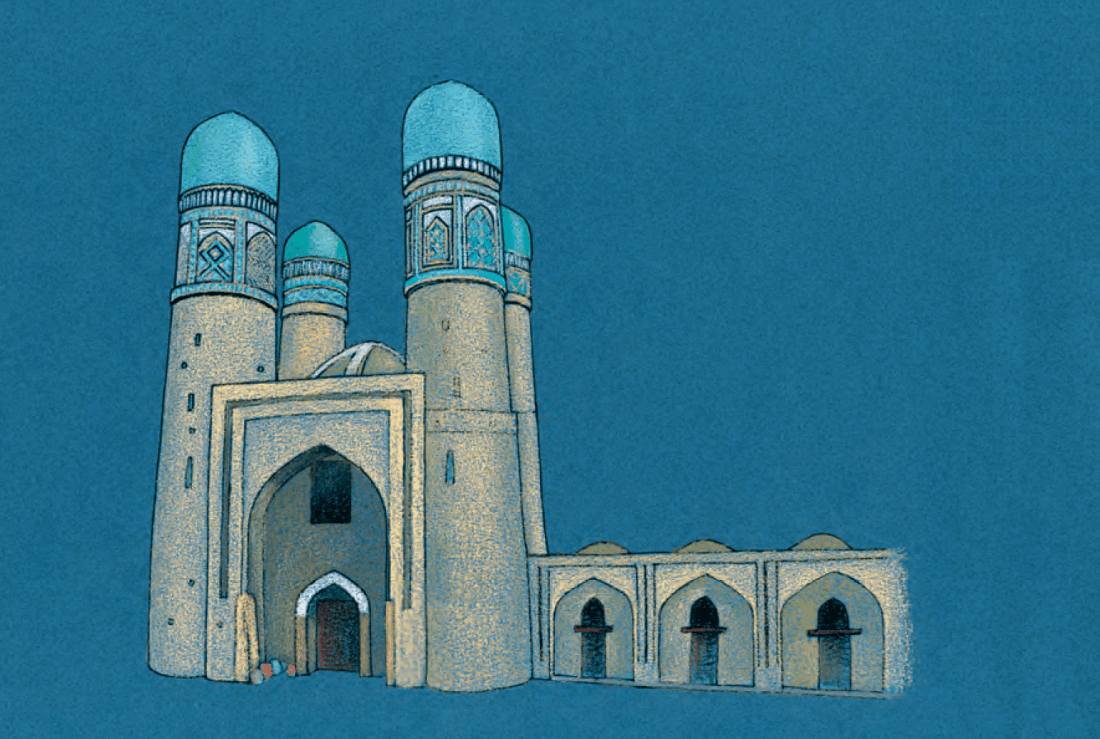 Resan fortsätter in i Uzbekistan och där besöker man flera av de viktiga städerna utefter Sidenvägen. Valle fascineras över alla vackra byggnader, oftast i blåa och turkosa stenar, som dom nu får se.
